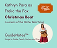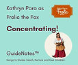 A sticker image of Singer-songwriter Kathryn Para Kathryn Para dressed as Frolic the Fox, standing with one leg up and holding a dark brown ukulele. She is looking up to her right side dreamily.